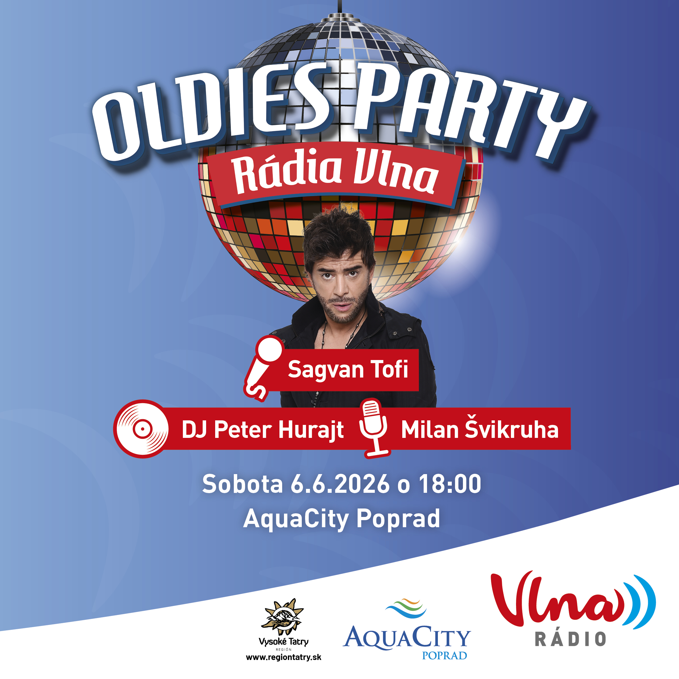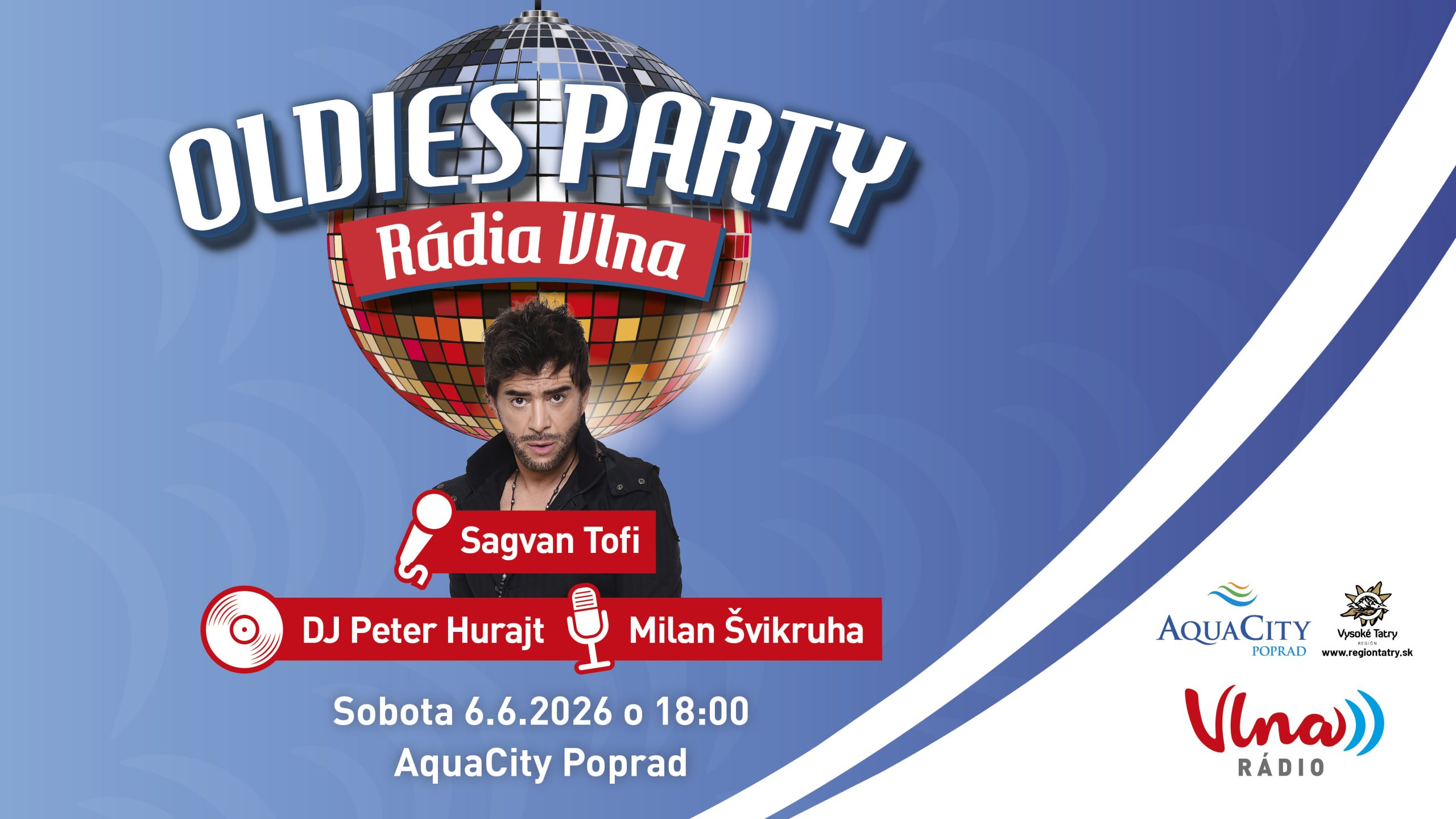Oldies party Rádia Vlna vo vonkajšom areáli a v bazénoch Blue Sapphire od 18:00 do 23:00 hod.